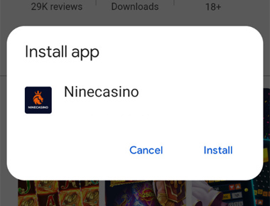 - Confirm: click on the notification to ninecasino download app and confirm;